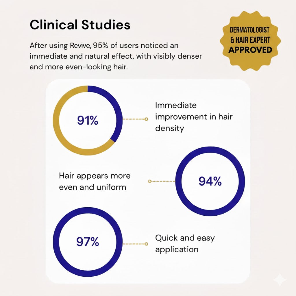At Revive, we believe in delivering visible results you can trust. Our Hair Density Filler has undergone rigorous Clinical Studies to validate its effectiveness and user satisfaction.