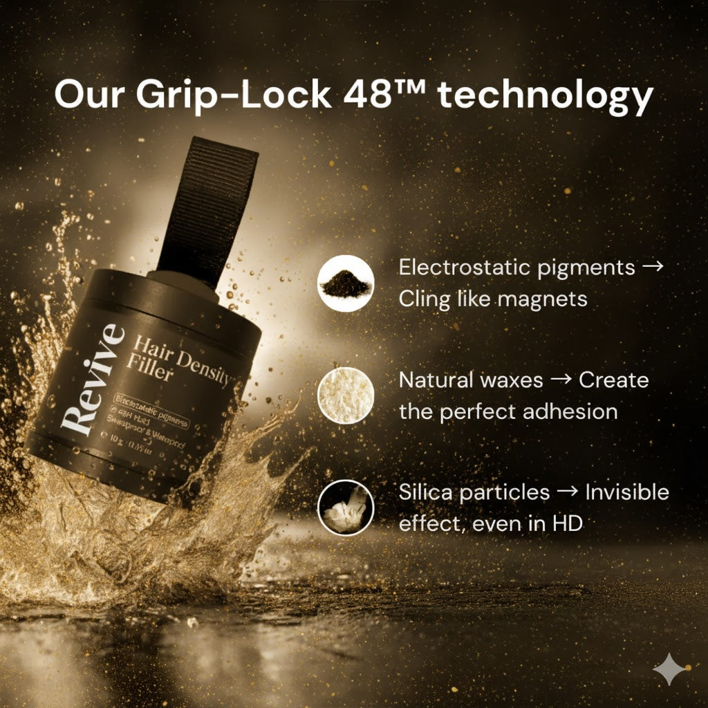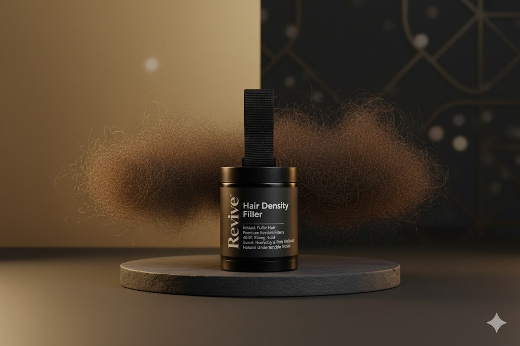 Our Revive Hair Density Filler is meticulously crafted to blend seamlessly, delivering an immediate and natural transformation that’s effortlessly chic. Placed against a backdrop of luxurious gold, it symbolizes the rich, lasting value and the radiant confidence you'll gain. More than just a product, it's a daily ritual that empowers you to gain your confidence back, beautifully and discreetly. Experience the gold standard in haircare – simple, effective, and undeniably elegant.